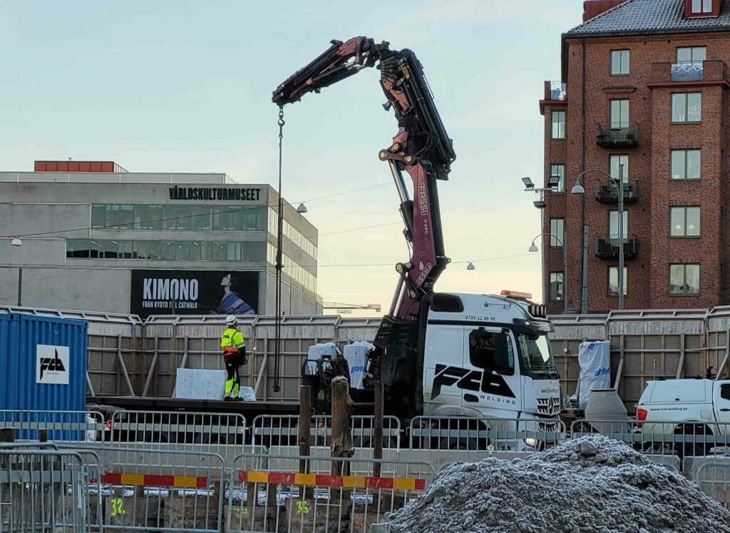 – Lyftkapacitet: 10 m = ca 8ton  |  20 m = ca 3,2 ton  |  30 m = ca 1 ton   |   32-33 m = max 200 kg